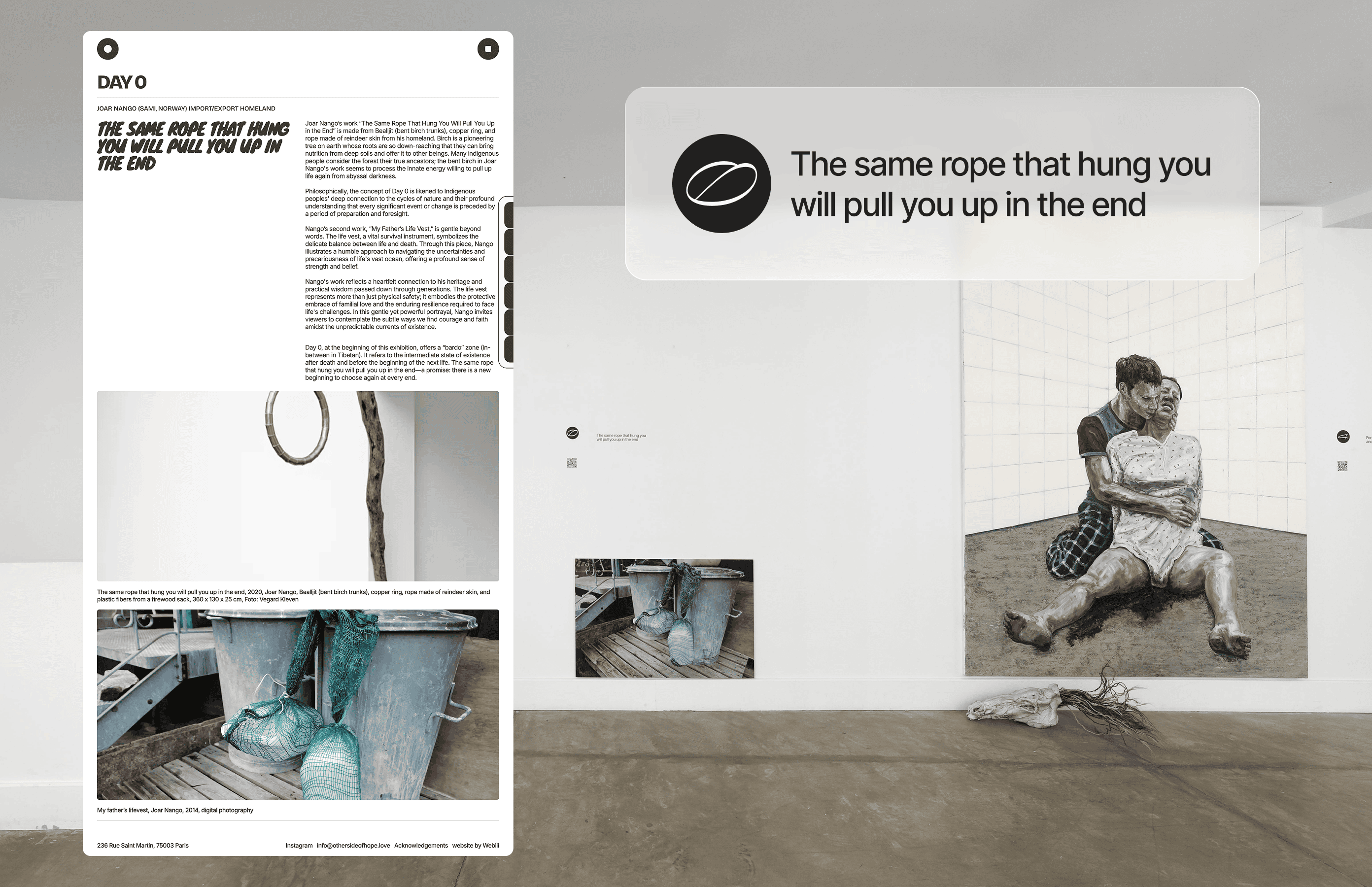 A digital exhibition running alongside the physical show — custom 3D virtual gallery, animated artworks, scroll-driven interactions, nine days each with their own page.